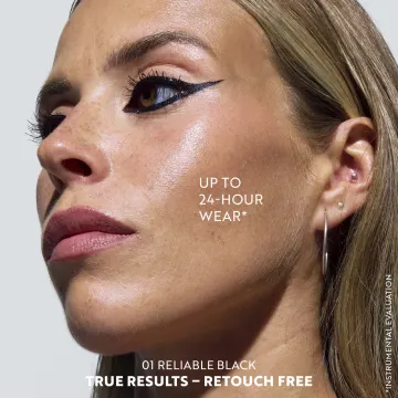 Skaka väl före användning. Applicera eyelinern nära fransraden, börja i mitten av ögat. Följ linjen in mot inre ögonvrån och avsluta med den stil du önskar: tunna linjer, grafiska former eller en klassisk vinge.