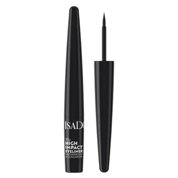 IsaDora The High Impact Eyeliner är en vattenfast eyeliner med intensiv färg och lång hållbarhet. Den snabbtorkande formulan appliceras enkelt med den precisa dip-linern vilket gör det lätt att skapa tunna linjer eller grafiska vingar. Eyelinern sitter kvar genom svett och fukt och är oftalmologiskt testad för att passa även känsliga ögon. Vegansk och parfymfri. 1,70 ml.