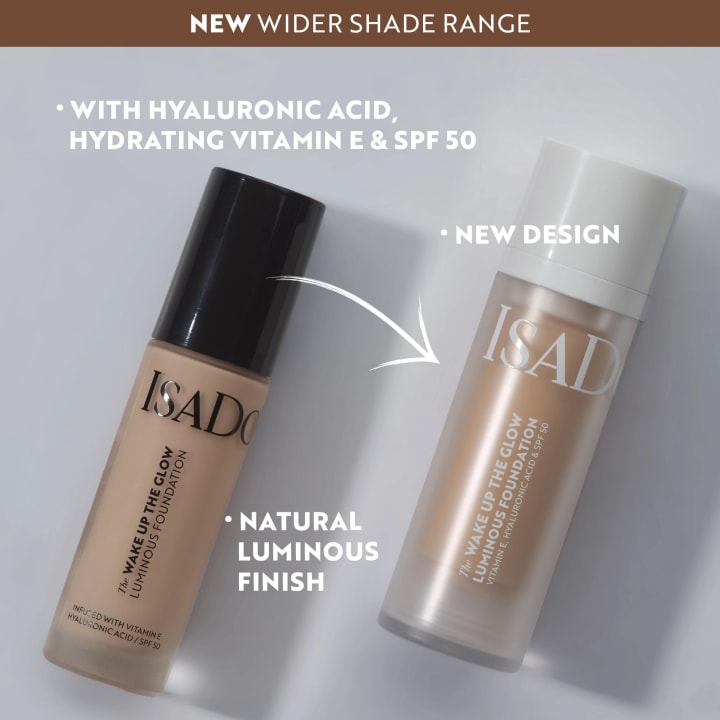 IsaDora Wake Up the Glow Luminous Foundation är en lystergivande foundation som återfuktar huden och ger en naturlig finish. Med SPF 50 som ger ett högt skydd mot solens skadliga UVA- och UVB-strålar. Berikad med hyaluronsyra som återfuktar huden på djupet och hjälper till att bevara dess elasticitet, och E-vitamin som återfuktar och skyddar huden mot fria radikaler. Lätt formula som ger medium täckning, vacker lyster och en naturlig finish. Finns i flera nyanser som är framtagna för att passa ett brett spektrum av varma, neutrala och kalla undertoner för att enkelt kunna hitta rätt nyans. Vegansk. Oparfymerad. 30 ml.