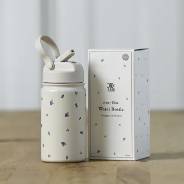 Jack o Juno Vattenflaska Berry Blue är en kombination av både vattenflaska och termos utformad för barn. Vattenflaskan har en inbyggt sugrör och en greppvänlig form anpassad för små händer. Tillverkad av rostfritt stål med fint bärmotiv. Rymmer 350 ml.