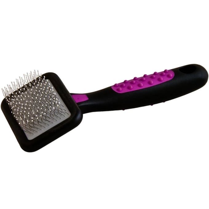 Kw Smart Karda Mjuk är en karda med tunna piggar för urborstning av päls med greppvänligt handtag. Passar extra bra till hund och katt med mycket tunn eller känslig hud. Mått: S 6x14 cm M 8x14 cm