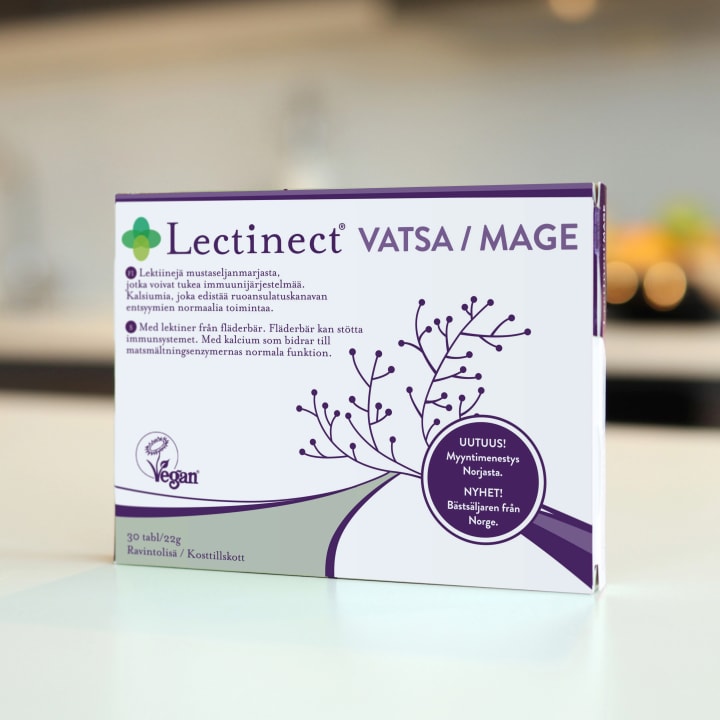 Lectinect Mage är ett kosttillskott för magen med kalcium som bidrar till matsmältningenzymernas normala funktion. Kosttillskottet innehåller även vitamin A som ser till att bibehålla normala slemhinnor och bidrar till immunsystemets normala funktion. Utvecklad i Norge. 30 tabletter.