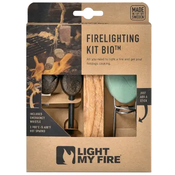 Light My Fire FireLighting Kit är ett komplett kit för att enkelt göra upp eld eller tända gasolkök och grill. De olika delarna fungerar utmärkt oavsett väderlek eller höjdmeter. Innehåller tändstål, tändved och grillgaffel. Tändstålet är tillverkat av en tålig magnesiumlegering och ger upp till 3000 tändningar. Tändveden är hållbart producerad och ger en stark eld som brinner länge och tack vare den höga andelen kåda antänder den även när det är blött ute. Grillgaffeln fästs på valfri pinne och är det perfekta tillbehöret för att hålla maten på plats över elden.