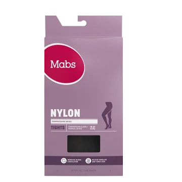 Mabs Nylon tight är mjuka och bekväma strumpbyxor med kompression vilket ökar blodflödet i benen något som i sin tur motverkar trötthet, svullnad och åderbråck. Strumpbyxorna är stickad i ett bekvämt, hållbart OEKO-texcertifierat material och av kompressionsklass 1 (15-21 mmHg), 140 denier. Dom har en slät stickning och finish för en elegant look som passar både på kontoret som på fritiden. Vid långvarigt stillasittande eller stående kan benen och fötterna bli svullna och kännas tunga, spända och trötta. Även graviditet, övervikt och flygresor kan orsaka svullna fötter och ben. Genom att använda en kompressionsstrumpa ökar blodflödet i benen så att de känns pigga och starka hela dagen, oavsett du står går eller sitter mycket. Strumporna hjälper även till att motverka åderbråck. 1 par. Medicinteknisk produkt, läs bipacksedeln noga innan användning. Medicinska kompressionsstrumpor erbjuder kompressionsterapi med medicinsk kompression klass I som har en vetenskapligt bevisad effekt. För att hitta din strumpstorlek och för att passformen skall bli perfekt finns det tre mått du bör utgå från: 1) Omkretsen runt ankeln där den är som smalast (A). 2) Omkretsen runt vaden där den är som bredast (B). 3) Din skostorlek (C). Lårets maximala omfång (D). Storleksöversikt: Storlek S: Omfång ankel: 18-21 cm (A), Omfång vad: 28-34 cm (B), Skostorlek: 36-38 ( C), Lårets max omf: 44-55(D), Strumpans längd: 80 cm Storlek M: Omfång ankel: 20-23 cm (A), Omfång vad: 31-37 cm (B), Skostorlek: 38-40 ( C),Lårets max omf: 48-56(D) Strumpans längd: 85 cm Storlek L: Omfång ankel: 22-25 cm (A), Omfång vad: 34-40 cm (B), Skostorlek: 40-42( C), Lårets max omf: 52-60(D) Strumpans längd: 90 cm