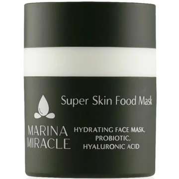 Marina Miracle Super Skin Food Mask är en ansiktsmask som ger återfuktning och näring samt verkar för lyster och jämnare hudyta. En multimask som exfolierar med fruktsyra samtidigt som den ger djup återfuktning och näring för torr och trött hud. Innehåller 4% fruktsyra (AHA), från gröna äpplen som verkar lätt exfolierande och hjälper till att ge fukt och näring på djupet. Innehåller även probiotika från fermenterad aloe vera och grönt te som ger näring och skydd. Berikad med mineralrik spirulina och fermenterad havre. Formulan har en doft av gröna äpplen. 30 ml.
