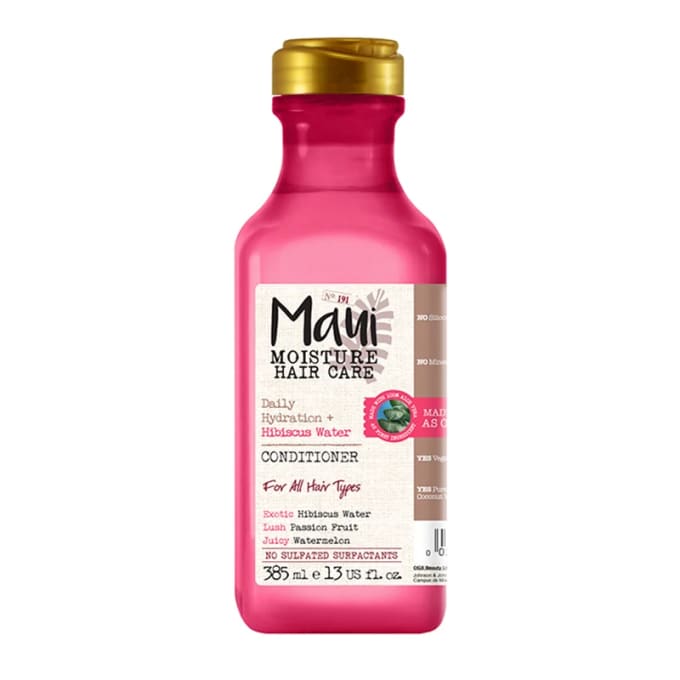 Maui Moisture Lightweight Hydration + Hibiscus Water Conditioner är ett återfuktande balsam som ger ditt hår rejält med fukt utan att tynga ner håret. Med en blandning av exotiskt hibiscusvatten, antioxidantrik passionsfrukt och mjukgörande vattenmelon är detta balsam perfekt för volymlöst och torrt hår. Hårstråna lämnas mjukare med både starkare in- och utsida, samtidigt som håret får en fräsch doft. 385 ml.