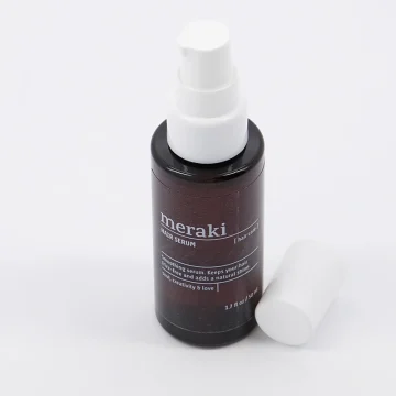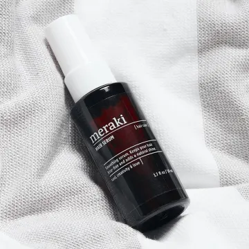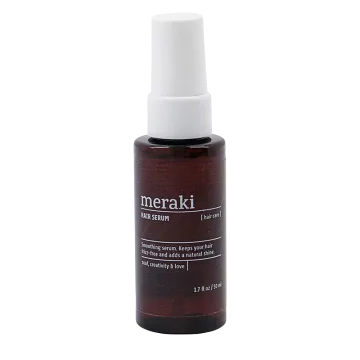 Meraki Hair Serum är ett återfuktande serum som motverkar flygigt och krusigt hår. Detta serum innehåller arganolja, kokosnötsolja och jojobaolja vilket ger håret en mjuk känsla och ger håret glans. Serumet har fått en subtil doft av vita blommor och havet. 50 ml.