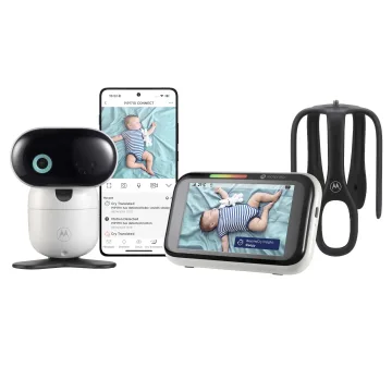 Motorola Baby Monitor PIP1710 Connect är en videobabymonitor med 5” HD-pekskärm. Den innovativa gråtdetekteringen kan tolka fem olika typer av babyskrik och hjälper dig att snabbare förstå ditt barns behov. Kameran kan fjärrstyras med panorering, lutning och zoom och anslutningen sker via både Wi-Fi och 2,4 GHz FHSS för säker och stabil övervakning. Monitorn har även temperaturövervakning, automatiskt mörkerseende, tvåvägskommunikation och upp till 10 timmars batteritid.