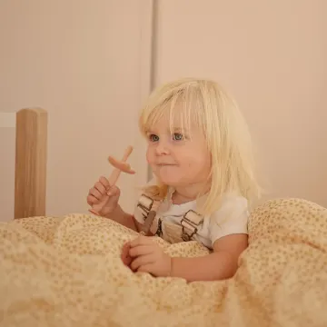 Mushie Flower Training Toothbrush är en söt tandborste tillverkad av 100% livsmedelsgodkänd silikon, med supermjuka borststrån som skonsamt rengör tänder och tandkött. Barnvänlig och lekfull design med ett säkerhetsskydd i form av en blomma, som hjälper till att förhindra att tandborsten kommer för långt ned i munhålan när barnet ska borsta tänderna själv. Säkerhetsskyddet är avtagbart och kan avlägsnas för att rengöra tandborsten eller när barnet är stort nog att använda tandborsten utan skydd. I botten av skaftet finns en liten sugkopp som gör att tandborsten kan stå på egen hand och lufttorka efter användning. Passar barn i alla åldrar.