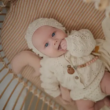 Mushie Pacifier Clip Eva är en napphållare som ser till att ditt barns napp finns nära tillhands och sitter säkert på plats i klädesplagg eller snuttefilt. Napphållare hjälper dig och ditt barn att hålla reda på nappen och förhindrar att den tappas bort eller faller till marken. Klämman och pärlorna är tillverkade av 100% livsmedelsklassad silikon och kan kombineras med de flesta nappar.