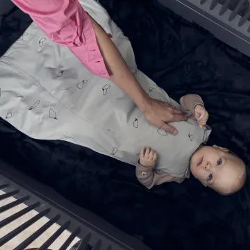 Ta hänsyn till rumstemperaturen och barnets sovkläder när du väljer sovpåse till din bebis. För en fullständig guide om förhållandet mellan rumstemperaturen och lämpliga nattkläder för barns sovpåsar, läs produktens användarmanual. Skötselråd: Tvätta i 40°C Får inte kemtvättas Tvätta sovpåsen innan den används första gången