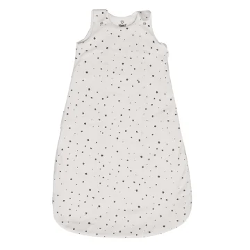 Najell Sovpåse Dot White 0-6 månader är en mjuk och bekväm sovpåse i 100% bomull som hjälper din bebis att hålla en behaglig temperatur under natten. Med en lätt konstruktion och TOG 0,5 passar den perfekt under varmare månader eller tillsammans med pyjamas när det är svalare. Den praktiska dragkedjan från botten upp på sidan gör det enkelt att lägga i och ta upp bebisen, samtidigt som tryckknappar i axlarna ger en smidig passform. Storleksguide: Storlek 0-6 månader: Passar bebisar som är 50-65 cm långa. Bredd från armhåla till armhåla: 26 cm Längd axel till nederkant: 68 cm Storlek 6-18 månader: Passar bebisar som är 65-77 cm långa. Bredd från armhåla till armhåla: 30 cm Längd axel till nederkant: 80 cm