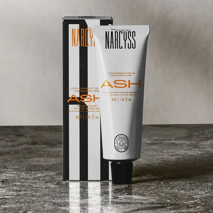 Narcyss Ash är en ansiktsskrubb med vulkanisk sand som hjälper till att avlägsna döda hudceller och rengöra porer. Den innehåller naturliga exfolieringskorn från isländska vulkaner, grönt te-extrakt och vitamin E som är rika på antioxidanter. Skrubben lämnar huder ren och fräsch. 30 ml.