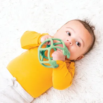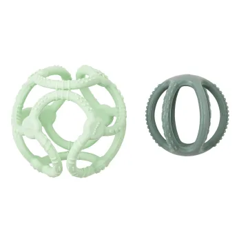 Nattou Soft Silicone Aktivitetsboll Grön är två mjuka och flexibla bollar tillverkade i silikon som är enkla att sätta ihop till en grepp- och bitvänlig aktivitetsboll för nyfödda. Den är framtagen för att vara lätt att greppa för små händer, skön att bita i när tänderna växer och stimulerar barnets handmotorik. Mått: stor boll 10 cm, liten boll 7 cm.
