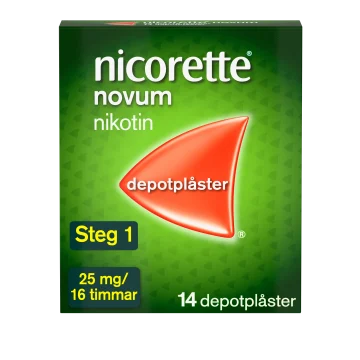 Nicorette plåster är ett receptfritt nikotinläkemedel för dig som vill sluta röka och bli rök och nikotinfri. Nicorette plåster lindrar röksug, nikotinbegär samt abstinenssymtom såsom ångest, irritation och ökad aptit. Nicorette plåster finns i tre olika styrkor 25, 15 och 10 mg. Behandlingstidens längd är individuell och längre behandlingstid än 6 månader rekommenderas inte. Nicorette Novum depotplåster kan användas ensamt eller i kombination med antingen Nicorette 2 mg tuggummi/sugtablett/resoriblett eller Nicorette Inhalator 10 mg eller Nicorette munhålespray 1 mg/spray för snabb lindring av nikotinbegäret.