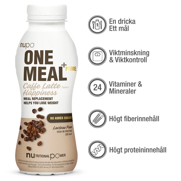 MellanMJÖLK (1,8% fett), vatten, MJÖLKprotein, cikoria rotfiber (inulin),stabiliseringsmedel: cellulose, cellulosegummi, natriumpolyphosphater, carrageenan; vegetabilsk olja (majsolja), vitamin- & mineralblanding (magnesiumsalte af orthophosphorsyre, kaliumcitrat, L-ascorbinsyre, cuprisulfat, DL-alpha-tocopherylacetat, retinylacetat, zinksulfat, nikotinamid, calcium-D-pantothenat, kobberbisglycinat, manganosulfat, D-biotin, natriumselenit, cholecalciferol, pyridoxinhydrochlorid, phylloquinon, kaliumjodid, thiaminmononitrat, riboflavin, pteroylmonoglutaminsyre), aroma, färgämne: ammonieret sockerkulör; kaffe ekstrakt (0,15%); salt,sötningsmedel: sucralose; antioxidant: ascorbinsyreestere av fettsyror, enzym: laktase. För allergener, se ingredienser med stora bokstäver och fetstil. Kan innehålla spår av gluten, ägg, sulfiter, jordnötter och andra nötter.