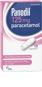 Panodil suppositorier innehåller paracetamol som är smärtlindrande och febernedsättande.Panodil suppositorier används för behandling av tillfälliga feber- och smärttillstånd av lindrig art, t ex feber vid förkylning, huvudvärk, tandvärk, menstruationssmärtor, muskel- och ledvärk.Suppositorier är lämpliga för feber och smärttillstånd vid sväljsvårigheter, illamående och kräkningar. Panodil suppositorier kan användas av personer med känslig mage eller magsår och personer med ökad blödningsbenägenhet. Du måste tala med läkare om symtomen försämras eller inte förbättras inom 3 dagar vid feber eller smärta. Använd inte Panodil till barn under 12 år i mer än 2 dygn om inte läkare föreskriver annat.