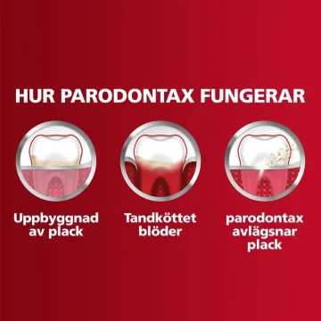 Parodontax Extra Fresh Tandkräm hjälper till att motverka blödande tandkött och ger en ren känsla i munnen efter tandborstning som varar i flera timmar. Blödande tandkött kan orsakas av uppbyggnad av plack längs med tandköttskanten. Om det inte avlägsnas kan detta leda till dålig andedräkt, rött och svullet tandkött och på längre sikt tillbakadraget tandkött. För bästa resultat, används Parodontax två gånger dagligen. 75ml