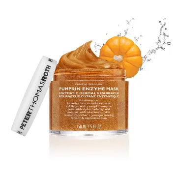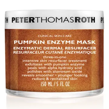 Peter Thomas Roth Pumpkin Enzyme Mask är en trippelverkande ansiktsmask som kombinerar kemisk, enzymatisk och mekanisk exfoliering. Formulan innehåller AHA-syra, pumpaenzymer och fina kristaller av aluminiumoxid som tillsammans hjälper till att avlägsna döda hudceller och jämna ut hudens struktur. Masken är berikad med C-vitamin som bidrar till att ge huden ökad lyster och en fräschare ton. Den krämiga ansiktsmasken verkar lystergivande och exfolierande, vilket kan bidra till en mjukare och mer jämn hud. Passar alla hudtyper och kan användas som en del av en regelbunden hudvårdsrutin. 150 ml.