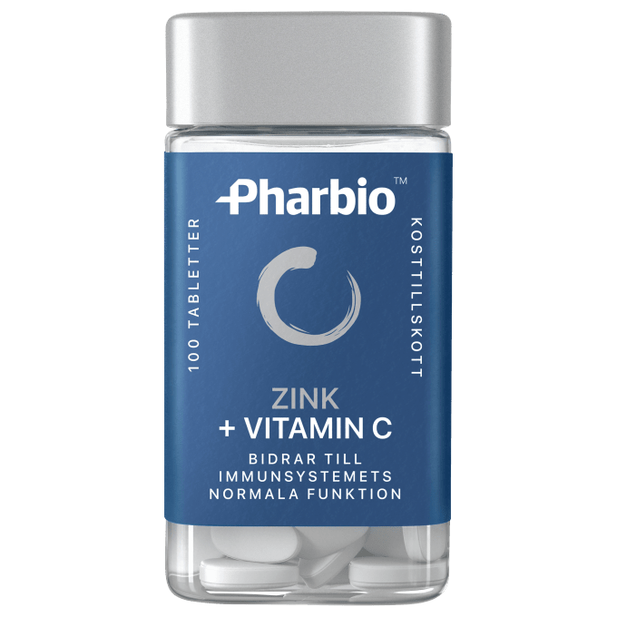 Pharbio Zink + Vitamin C som tidigare hette Gevita Zink + Vitamin C är ett kosttillskott med C-vitamin och zink som bidrar till immunsystemets normala funktion. Både C-vitamin och zink är antioxidanter som hjälper till att skydda cellerna mot oxidativ stress. Zink bidrar även till att bibehålla normal synförmåga, normalt hår och naglar samt normal hud. Mandelformad tablett som är lätt att svälja. 100 st.