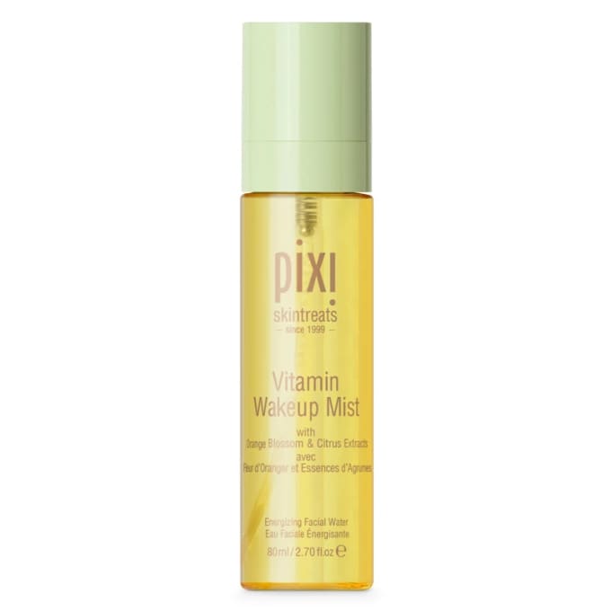 Pixi Vitamin Wakeup Mist Energizing Facial Water är ett ansiktsvatten i sprayform som ger huden energi och en boost av svalkande mist. Face misten kan sprayas som en toner för att stärka och återfukta huden innan du applicerar ansiktskräm, efter makeup som en skyddande setting spray eller under dagen för att fräscha upp, återfukta och svalka huden. Misten innehåller apelsinblomma, extrakt från citrusfrukter och lakritsrot, samt lavendel och arginin som jämnar ut, ger huden en vitamin-boost och ny fräsch lyster. Parabenfri. 80 ml.