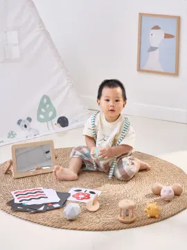- Box med leksaker för bebisar som är 0-6 månader gamla