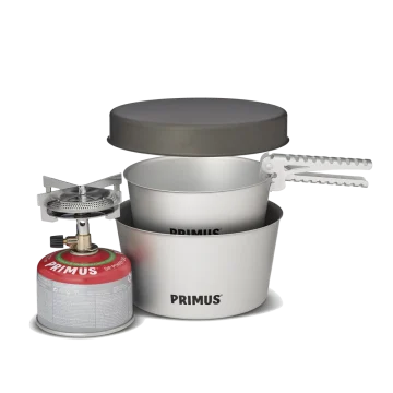 Primus Mimer Stove Kit II är ett klassiskt campingkök med allt som behövs för att laga mat på utflykter och vandringar med familjen. Kitet innehåller brännare, kastruller och stekpanna i robusta och slitstarka material som håller många år. Gasköket fästs enkelt på gasbehållaren och är snabbt redo för matlagning. Anordningen passar olika typer av kokkärl och passar för att laga mat åt upp till tre personer. Efter måltiden packas hela köket, inklusive kastruller och stekpanna, smidigt ned i medföljande förvaringspåse i slitstark nylon.