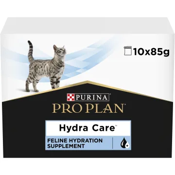 PURINA PRO PLAN Veterinary Diets Hydra Care Katt är ett kompletteringsfoder med en mjuk konsistens speciellt framtaget för katter som dricker för lite vatten. Genom att använda detta våtfoder som ett komplement till kattens dagliga kost ökar kattens totala vattenintag och urinutspädning. 10x85g.