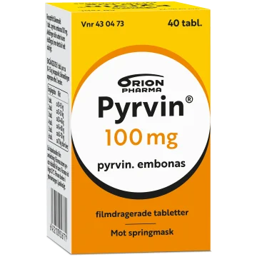Pyrvin är ett receptfritt läkemedel mot springmask. Pyrvin är effektivt mot springmask som engångsdos. När behandlingen upprepas efter två veckor dödas de maskar som utvecklats ur äggen efter den första dosen. Behandla hela familjen samtidigt. Behandlingen upprepas efter två veckor.