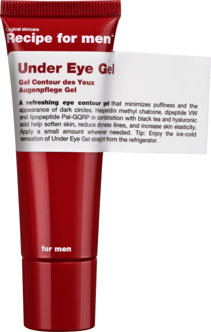 Recipe for Men Under Eye Gel är framtagen för att reducerar svullnader, påsar under ögonen samt mörka ringar runt ögonen. En ögongel som innehåller uppstramande och återfuktande ämnen för att motverka uttorkade linjer kring ögonen. Ögonkräm speciellt framtagen för manlig hy. Förvara i kylskåp för extra skön och kylande känsla. 25 ml.