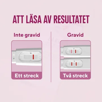 Enkelt att använda, kissa direkt på testet. Snabbt svar inom 1-5 min. Visar tydligt resultat med ett eller två streck. Om testet visar ett svagt positivt resultat rekommenderas att testa igen 2 dagar senare. Testet är över 99% tillförlitligt från och med dagen du väntar din mens. Du kan testa när som helst under dygnet men säkrast är att mäta morgonurinen, då hCG-koncentrationen är som högst. Förpackningen innehåller 2 st teststavar. Före användning, läs medföljande instruktioner. När kan jag testa? Du kan använda RFSU Early Tidigt graviditetstest redan vid 6 dagar innan utebliven mens (vilket är 5 dagar innan din mens väntas). *”Utebliven/Missad mens syftar på dagen efter väntad mens. Vid labbtester detekterades 75 % av gravid-resultaten 5 dagar innan väntad mens, 95 % detekterades 4 dagar innan och >99 % detekterades från 3 dagar innan väntad mens. Om du testar innan väntad mens bör du använda morgonurin. Får du svagt positivt resultat eller är osäker på resultatet, testa igen med morgonurin 2 dagar senare.