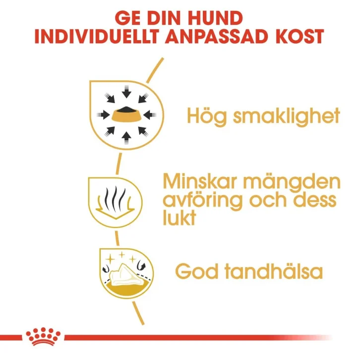 Royal Canin Chihuahua Adult är ett välsmakande och näringsrikt torrfoder lämpligt för din chihuahua från 8 månader och äldre. Framtaget för att tillfredsställa aptiten även hos de mest kräsna chihuahuas. Tack vare tre följande faktorer, särskilt anpassad bitstorlek och form, exklusiv sammansättning av näringsämnen och speciellt utvalda smaker. Fodret är berikat med näringsämnen som stödjer din hunds matsmältning vilket resulterar i en minskad mängd avföring och minskad lukt. Det innehåller även kalciumkelatorer som motverkar bildande och uppbyggnaden av tandsten. 1,5 kg.