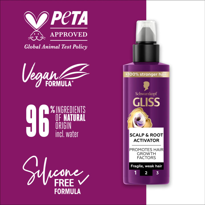 Schwarzkopf Gliss Full Hair Wonder Scalp & Root Activator är ett hårbottenserum för tunt hår. En hårbotten- och rotaktivatorbehandling som innehåller koffein och peptider som hjälper till att främja hårväxtfaktorer. Serumet hjälper till att stimulera och stärka hårrötterna utan att lämna några rester på håret eller kudden. Serumet innehåller 96% ingredienser av naturligt ursprung. Med en härlig doft av mysk. Silikonfri. Vegansk. 100 ml.
