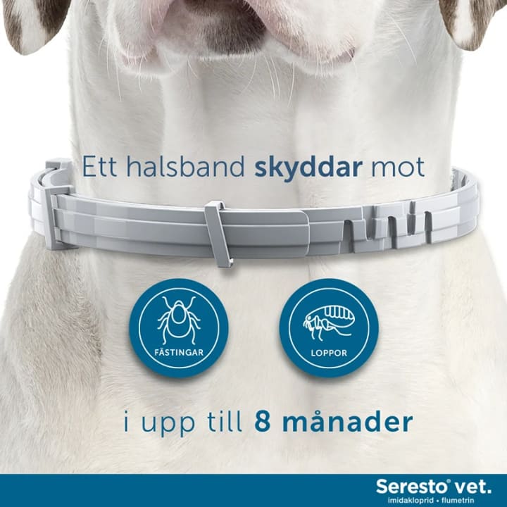 - Seresto vet. halsband kan användas för hundar över 8 kg. Har effekt under 7-8 månader