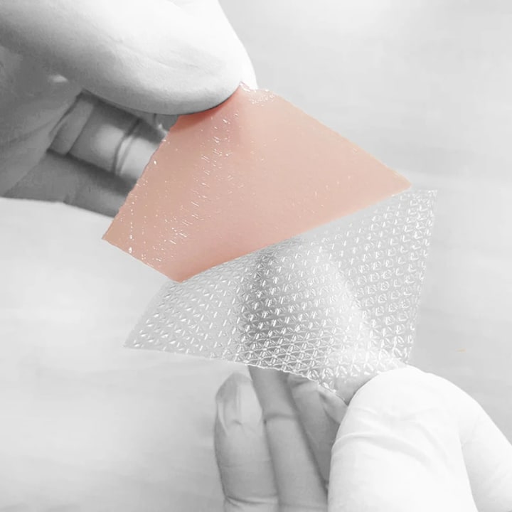 Behandla ärr med silikontejp Det är lämpligt att inleda behandlingen med silikontejp 1-2 veckor efter borttagning av stygn. Låt silikontejpen täcka ärret dygnet runt, avlägsna vid dusch/bad, torka torrt och återapplicera samma tejp igen fram till dess att silikontejpen inte fäster lika bra. Byt då till en ny tejpremsa. Instruktioner Riv/klipp i önskad längd, avlägsna skyddsplasten, fixera.