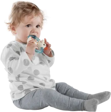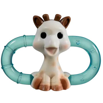 Sophie la Girafe Double Ice Bite Kylande Bitring är en bitring med två ringar som kan kylas i kylskåp för att ge effektiv lindring till barnets tandkött vid tandsprickning. Ringarna är vätskefyllda och den kylande effekten efter ett par timmar i kylskåpet ger en lugnande känsla till tandköttet när barnet tuggar på dem. Båda ringarna har en strukturerad yta som varsamt masserar tandköttet. Bitleksaken har även mjukare delar, som giraffens öron och horn, och ringarna fungerar som handtag för små händer.