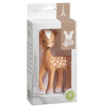 Sophie la Girafe Fanfan Bitleksak är en bitleksak i form av ett gulligt rådjurskid. Passar perfekt som första leksak till bebisar och hjälper till att lindra ömma tandkött vid tandsprickning samtidigt som barnets sinnen stimuleras. Tillverkad av 100% naturgummi.