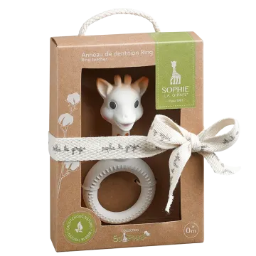 Sophie la Girafe So Pure Ring Bitring är en bitring tillverkad av 100% naturgummi. Passar perfekt för att stimulera barnets sinnen redan från födseln. Ringen är lätt att greppa och har olika texturer som masserar tandköttet. Giraffens fläckar och ögon stimulerar barnets syn och leksaken blir snabbt lätt att känna igen.