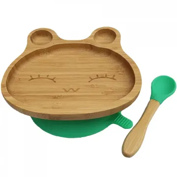 Summerville Organic Matset Bambu Kanin är en barnservis med delad tallrik och tillhörande sked. Matset i lekfullform likt en kanin tillverkat av bambuträ och silikon. Tallriken har en silikonring på undersidan som gör att den kan sättas fast i borden som en sugpropp. Silikonringen kan sen tas bort när barnet är större och den inte behövs längre för att hålla tallriken på plats. Kanterna på tallriken underlättar för barnet att äta själv. De mindre skålformade hålen är roliga detaljer som öron och små skålar att fylla som praktiskt separerar maten. Skeden är enkel att greppa och lätt för barnet att hålla i. Silikonets mjukhet gör den bekväm att ha i munnen. Bambun är FSC-märkt och ytbehandlad med livsmedelsgodkänd beläggning för att stå emot fukt och inte missfärgas. Silikonen är livsmedelskodkänt och utan BPA, PVC och ftalater. Storlek: 17x18 cm.