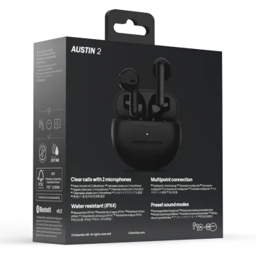 Urbanista Austin 2 är trådlösa hörlurar med fokus på stabil prestanda och enkel användning. De är designade med en kompakt och lätt design som är bekväm att bära under hela dagen. Hörlurarna har IPX4-klassning och är fukttåliga. De har dubbla mikrofoner med vindskydd och en batteritid på 5 timmar. Bluetooth multipoint för smidig växling mellan enheter och brusreducerande mikrofoner som ger tydligare samtal. Touchfunktionen gör att du enkelt kan spela och pausa musik samt svara på samtal.