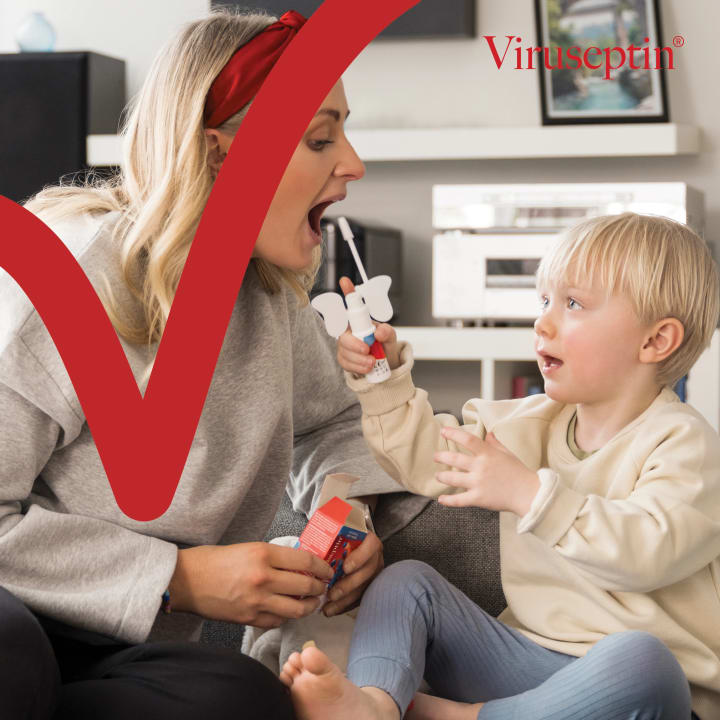 Viruseptin Halsspray för barn behandlar och minskar hosta och symptom i halsen förknippade med vanlig förkylning. Sprayen lindrar hosta och minskar frekvensen och graden av hosta, samt smörjer området för torrhosta och halsont. Skapar omedelbart ett fysiskt lager i svalget, vilket skyddar och återfuktar irriterade slemhinnor. Skyddar effektivt halsen från irriterande ämnen och lindrar halsont. Lämplig att använda både dag och natt. Med körsbärssmak och elefantöron, för en roligare användning. Medicinteknisk produkt, läs bipacksedeln innan användning. Från 3 år. 20 ml.