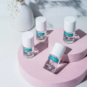Ingredienser : ETHYL ACETATE, BUTYL ACETATE, NITROCELLULOSE, ADIPIC ACID/NEOPENTYL GLYCOL/TRIMELLITIC ANHYDRIDE COPOLYMER, ALCOHOL, ISOSORBIDE DICAPRYLATE/CAPRATE, CAPRYLIC/CAPRIC TRIGLYCERIDE, DIMETHYL OXOBENZO DIOXASILANE, GLYCOLIC ACID, N-BUTYL ALCOHOL, ETOCRYLENE, HEXANAL, APIUM GRAVEOLENS (CELERY) SEED EXTRACT, TRIMETHYLPENTANEDIYL DIBENZOATE, AQUA (WATER, EAU), TOCOPHEROL. The ingredients list composing Vitry’s products is often updated. Before using a product, we recommend to read the ingredients list indicated on the products’ packaging.