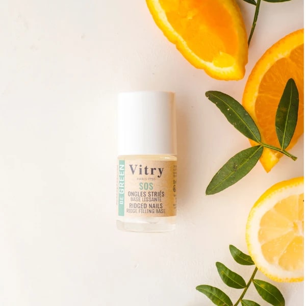 Vitry Sos Ridged Nails är nagellack för räfflade naglar. Innehåller mandelolja som har egenskaper som kan bidra till att återfukta och mjukgöra nagelbanden. Vegansk. 10 ml.
