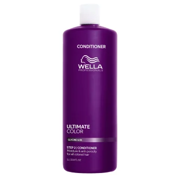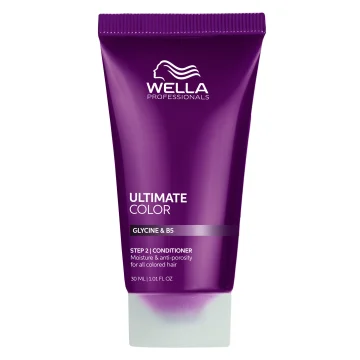 Wella Professionals Ultimate Color Conditioner är ett vårdande balsam särskilt utvecklat för färgat hår. Det hjälper till att bevara färgens intensitet och glans genom att släta ut och stärka hårstrået, vilket motverkar slitage. Formulan är berikad med glycin, en metallrenare och Pro-Vitamin B5. Tillsammans hjälper dessa ingredienser till att skydda håret mot fria radikaler, kapsla in fukt och bevara pigmenten för en mer hållbar färg. Resultatet är ett mjukt och lent hår med ökad lyster. Vegansk. 30 ml.