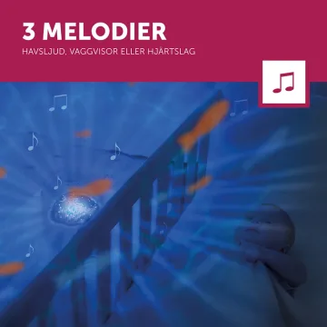 • Havsprojektor med trestegsprogram som hjälper det lilla barnet att somna