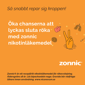 Sluta röka med Zonnic nikotinspray med smak av pepparmint. Rökning kan på grund av nikotinabstinens vara en stor utmaning att ge upp även för den mest motiverade. Med Zonnic nikotinspray som på grund av sitt smidiga munstycke sprayas på kindens insida, lindras abstinens på 60 sekunder. När de mest akuta abstinensbesvären dämpas ökar du dina chanser för att lyckas sluta. Användning Vrid upp munstycket och rikta det mellan tänderna mot kindens insida. Spraya ett eller två spray efter behov. Sluta röka tips •Det som händer när man slutar röka är att kroppen reagerar när den inte får den mängd tobak eller nikotin den är van vid, vilket ger abstinens. Därför kan användning av nikotinläkemedel underlätta den första jobbiga biten. •Ta reda på så mycket du kan om sluta röka biverkningar så att du är väl förberedd när du stöter på dem. •Gör en plan, bestäm ett datum för ditt sista bloss och schemalägg din avtrappning. •Motionera – träning och frisk luft hjälper dig hålla fokus, minskar röksug och ser till att du inte går upp i vikt. •Städa undan alla tobaksprodukter såsom cigaretter och snus. Det minskar risken att du använder dessa vid återfall.